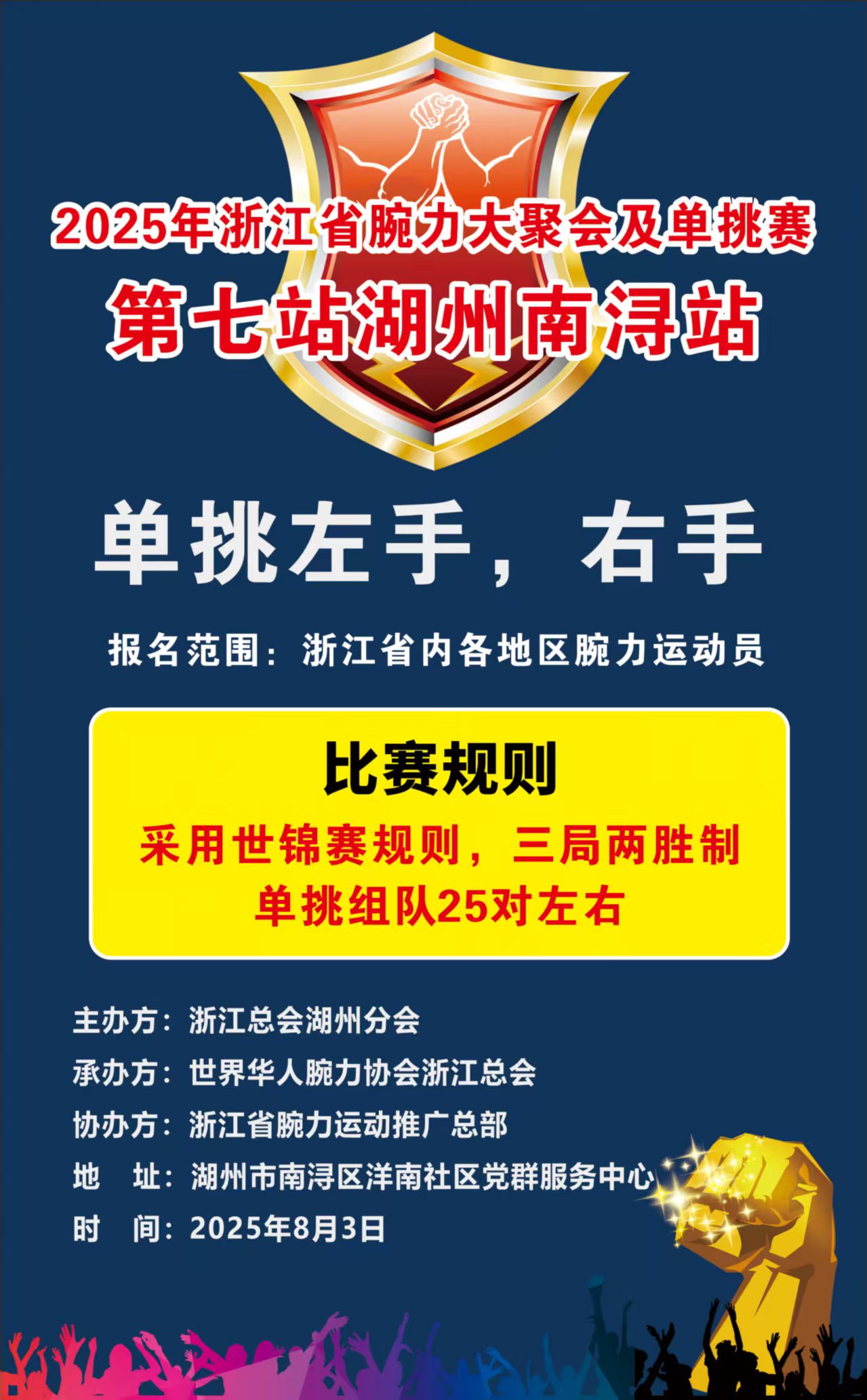 2025年浙江省腕力大聚会及单挑赛第七站湖州南浔站即将开赛