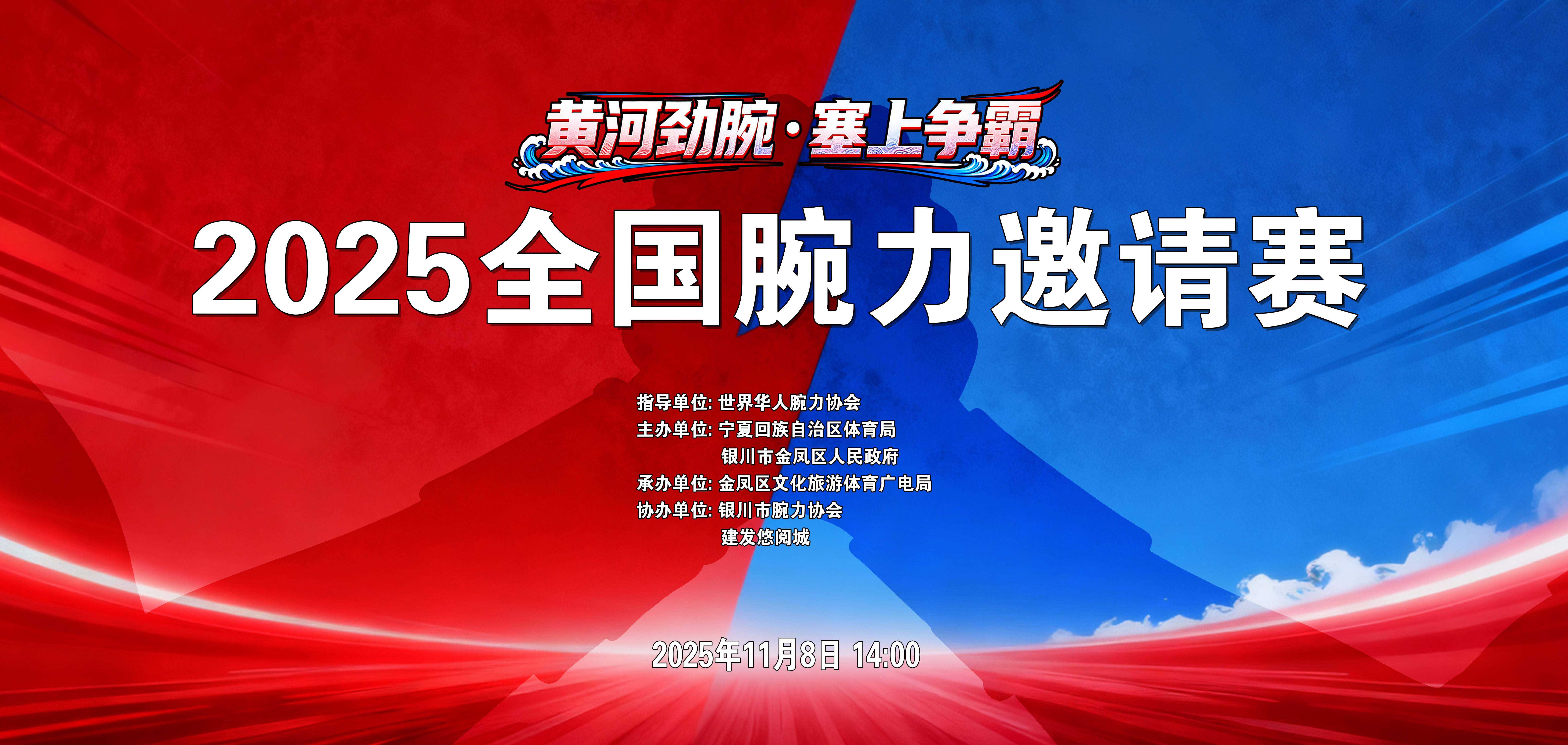 2025年11月8日,贺兰山下,力拔山河!黄河岸边,腕定乾坤!全国腕力勇士,银川欢迎你!于此塞上湖城,以力量会友,以豪情论英雄。让我们一“腕”豪情,问鼎贺兰之巅!